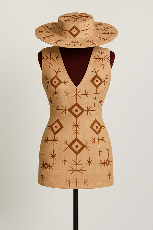 Short Brown Sleeveless Dress with Dark Brown Embroidery