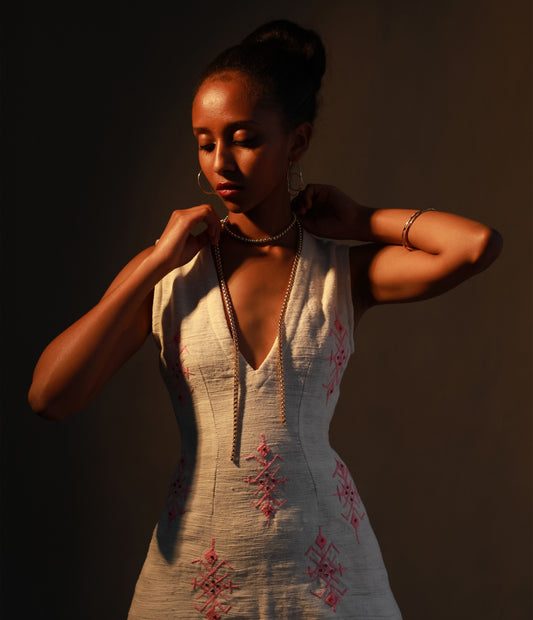 Sonia Embroidered Long Sleeveless Shirt and Brown Trouser set – Ethiopian Elegance